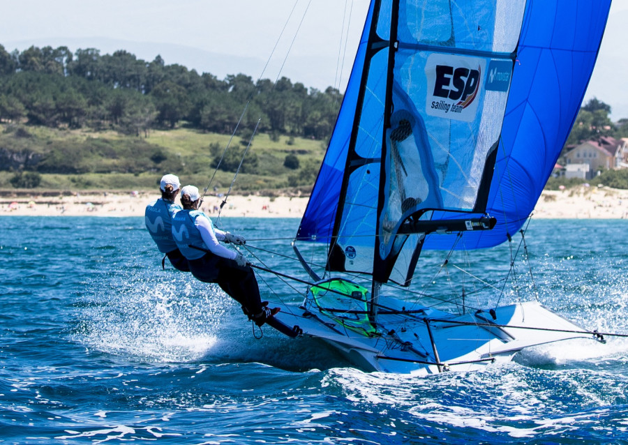 La tripulación española mejor situada en las clasificaciones provisionales es la de la gallega Támara Echegoyen y la balear Paula Barceló (Movistar) en 49er FX que se sitúan sextas, a siete puntos del podio; los asturianos Federico y Arturo Alonso son 12º, a cuatro puntos del Top10, en 49er; y el equipo canario-catalán de Tara Pacheco y Florian Trittel es 18º en Nacra 17.
