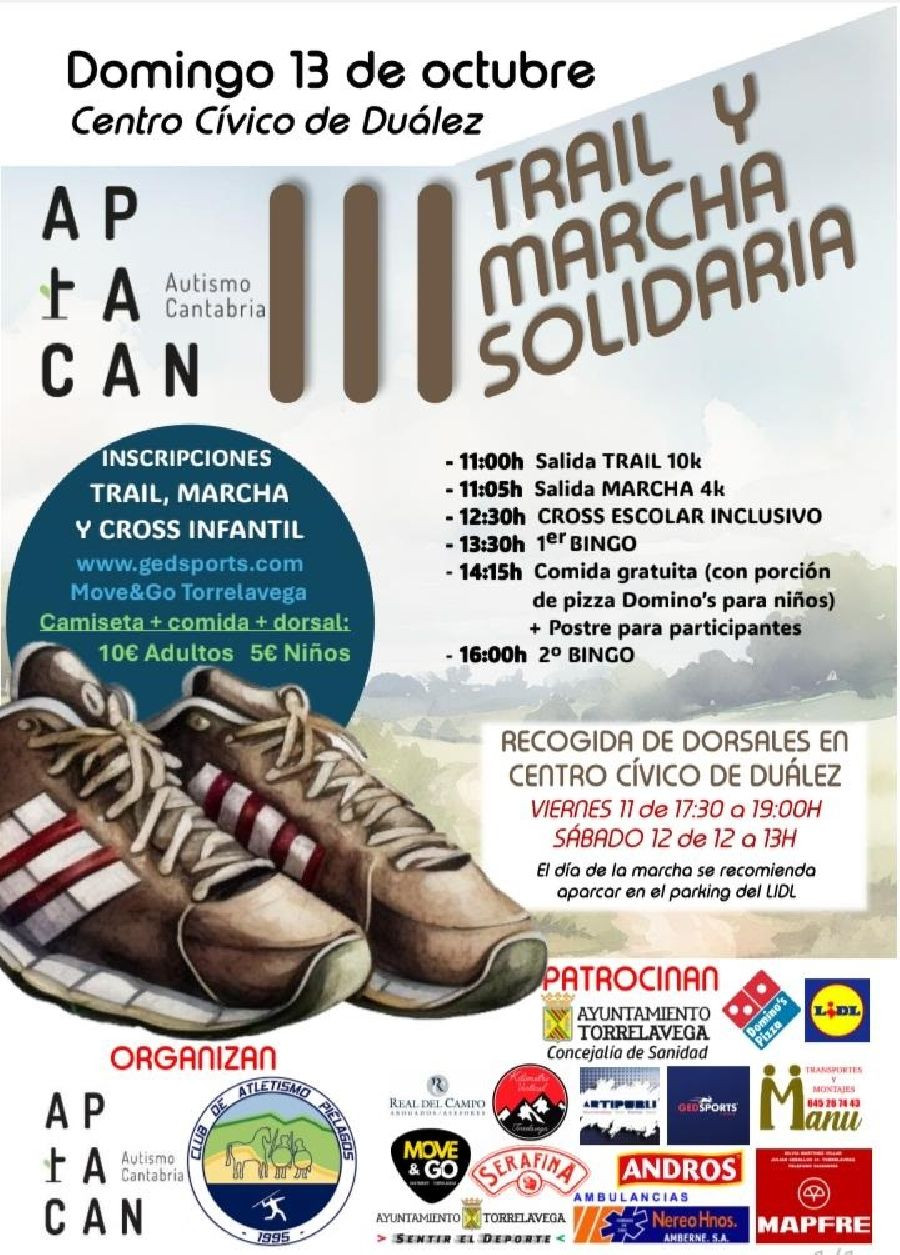 Torrelavega acogerá el domingo 13 de octubre el III Trail y Marcha Solidaria a favor de APTACAN Autismo Cantabria, de carácter familiar, y que saldrán a las 11.00 horas del Centro Cívico de Duález.