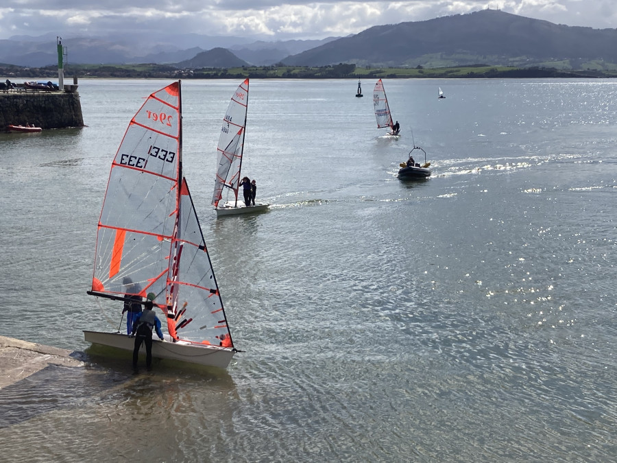 En esta ocasión han sido 9 las tripulaciones que han acudido para tomar parte en la jornada, comenzando a botar sus embarcaciones cuando el comité indicó que se habían fondeada en las cercanías del Museo Marítimo. Una vez más el Snipe de la escuela de Vela ha seguido trincado a la explanada, sin que nadie lo tripulase.