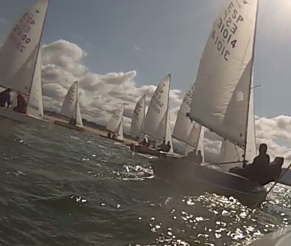 Tras un aplazamiento para modificar el recorrido al 240º, se dio la salida para la segunda prueba del día, que también fue valida a la primera; en esta ocasión la marea comenzaba a subir, con lo que la táctica de la regata cambiaba por completo, permitiendo escoger más opciones de bordos para llegar a la baliza.